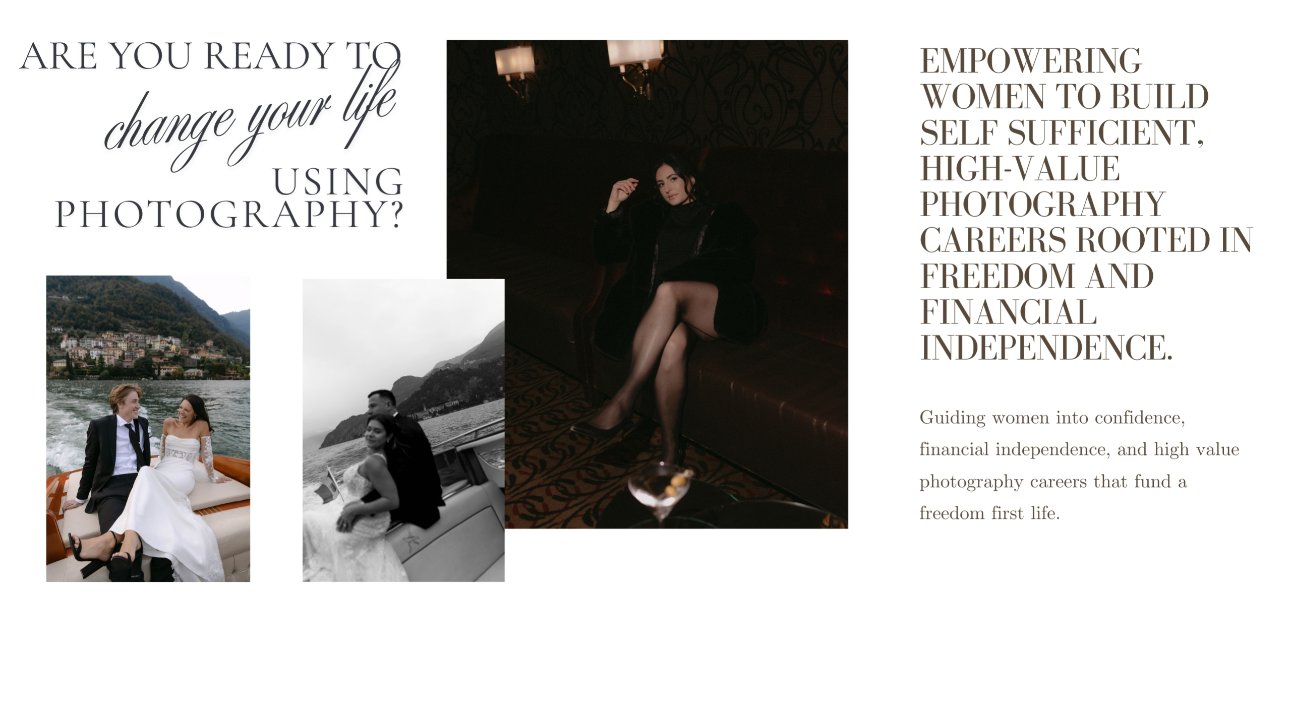 and women build self sufficient, freedom first lives through building a high value photography brand.